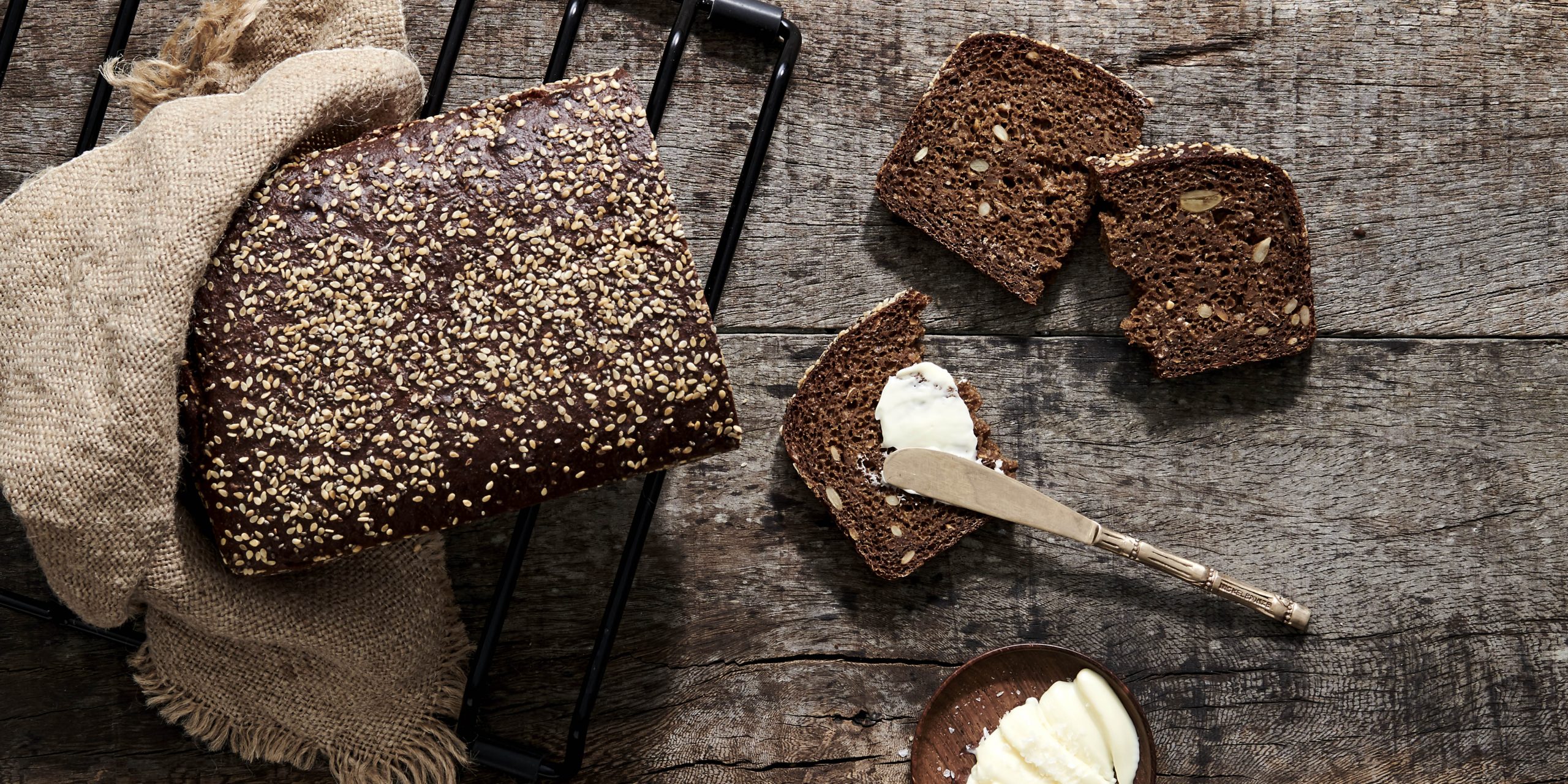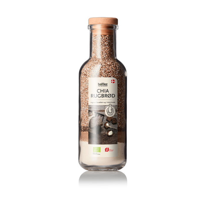 Bottle Rugbrødet er et klassisk dansk rugbrød med et twist af chia frø. Fyldt med knækket rug er Bottle rugbrødet et meget groft og mættende brød af sin slags og dermed perfekt til frokosten og de mange madpakker. For et twist kan halvdelen af vandet i opskriften erstattes med øl.