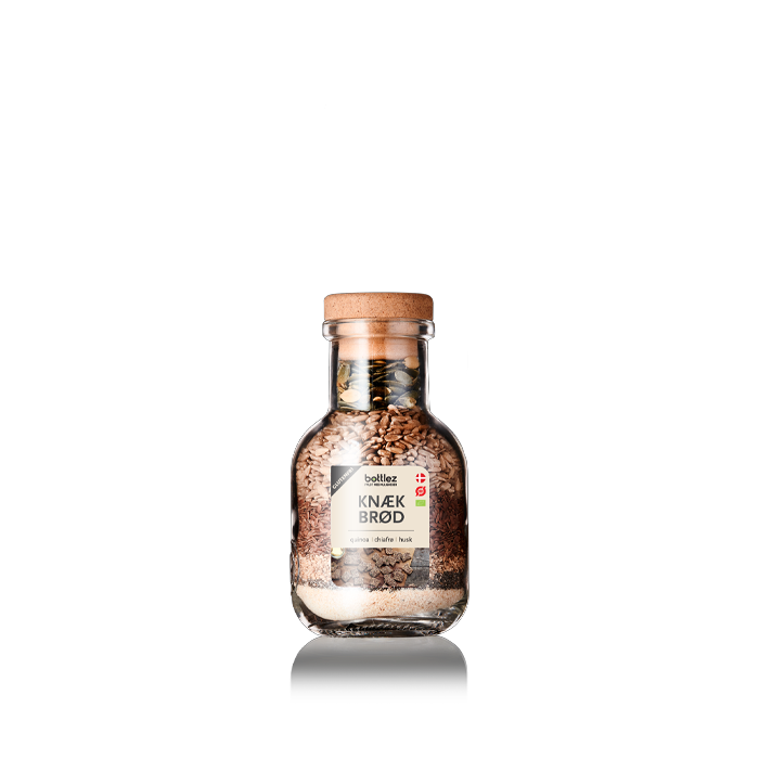 Vores glutenfri Bottle knækbrød er en ekstra sprød snack, der er perfekt til den lille sult. Vi anbefaler at rulle knækbrødet helt tyndt ud på bradepanden for en ekstra crispy smag, der er velegnet til at spise både med og uden pålæg.